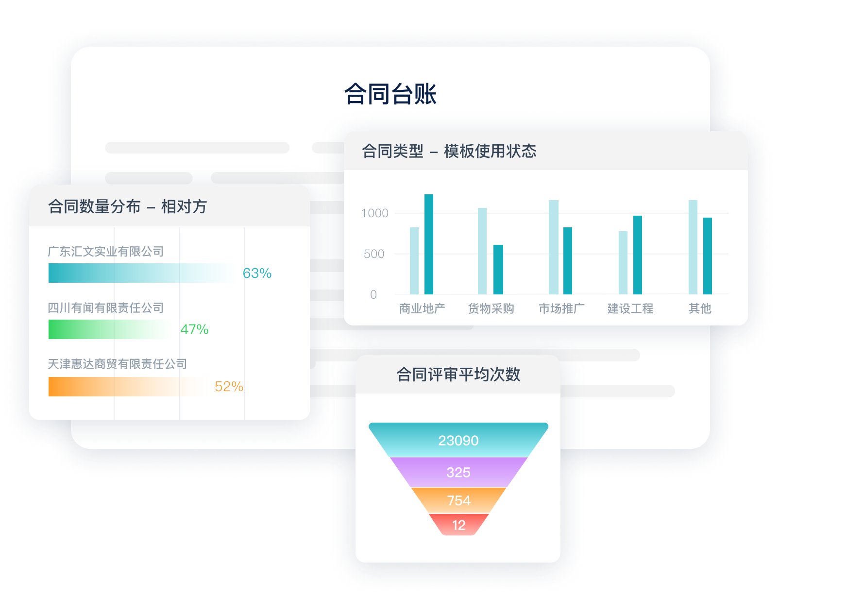 全流程合同数据自动积累,合同台账支持精准查询筛选合同。自动统计分析,提供量化指标支撑未来决策。