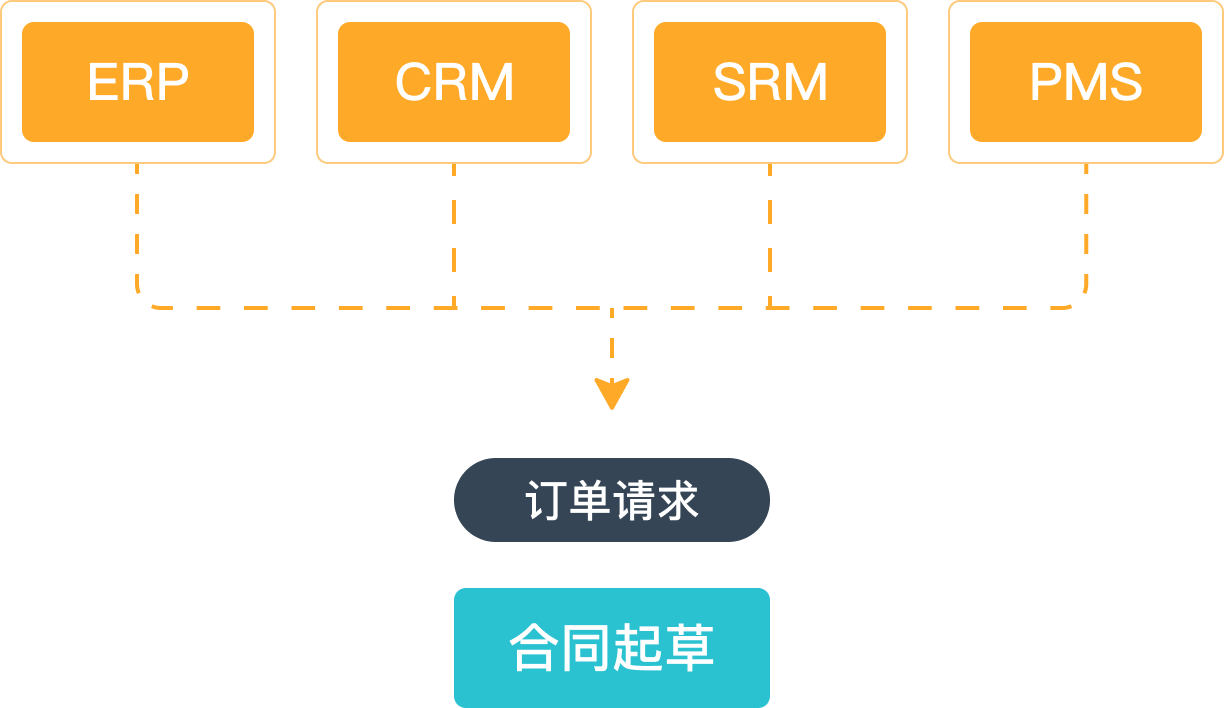 MeFlow可以与您已有的业务系统进行集成打通,以实现上游订单、供应商信息的自动带入、标准合同自动生成等功能